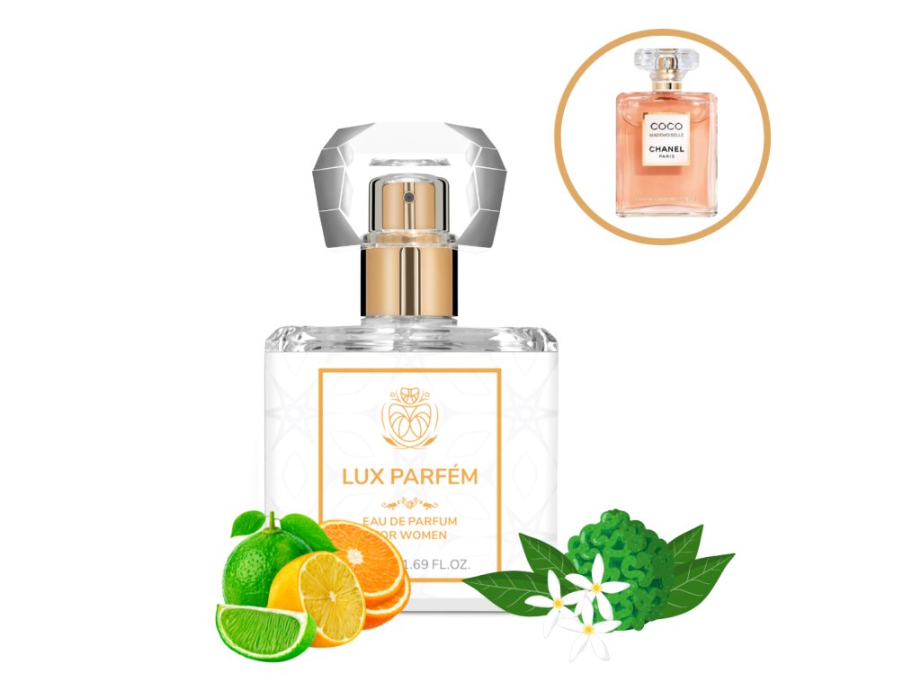 Náš parfém je inšpirovaný orientálno - drevitou vôňou Coco Mademoiselle Intense. Vrchné tóny sú sicílsky pomaranč, kalábrijský bergamot a citrón, stredné tóny sú ruža, jazmín a ovocné tóny a základ tvorí pačuli, fazuľa tonka, madagaskarská vanilka, labdanum a biele pižmo.