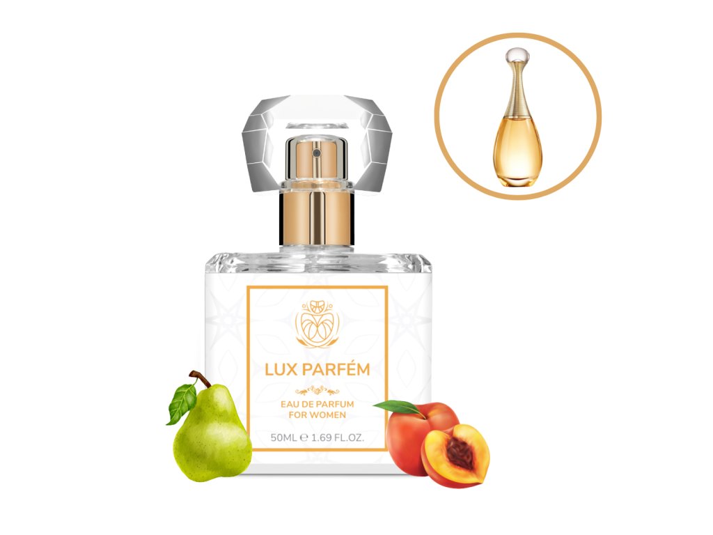 Tento produkt je inšpirovaný charakterom vône známej zo sortimentu značky Dior (model J’adore). Nejde o originálny produkt tejto značky ani o oficiálne prepojený, licencovaný, autorizovaný alebo schválený výrobok. Všetky ochranné známky a názvy patria ich príslušným vlastníkom a sú použité výhradne na účely porovnania charakteru vône.
