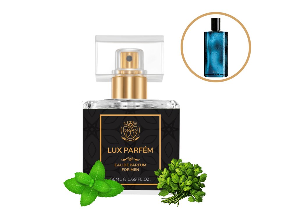Náš parfém je inšpirovaný aromaticko - vodnou vôňou Cool Water. Vrchné tóny sú morská voda, mäta, zelené tóny, levanduľa, koriander, rozmarín a calone, stredné tóny sú santalové drevo, jazmín, neroli a pelargónie a základ tvorí pižmo, dubový mach, céder, tabak a ambra.
