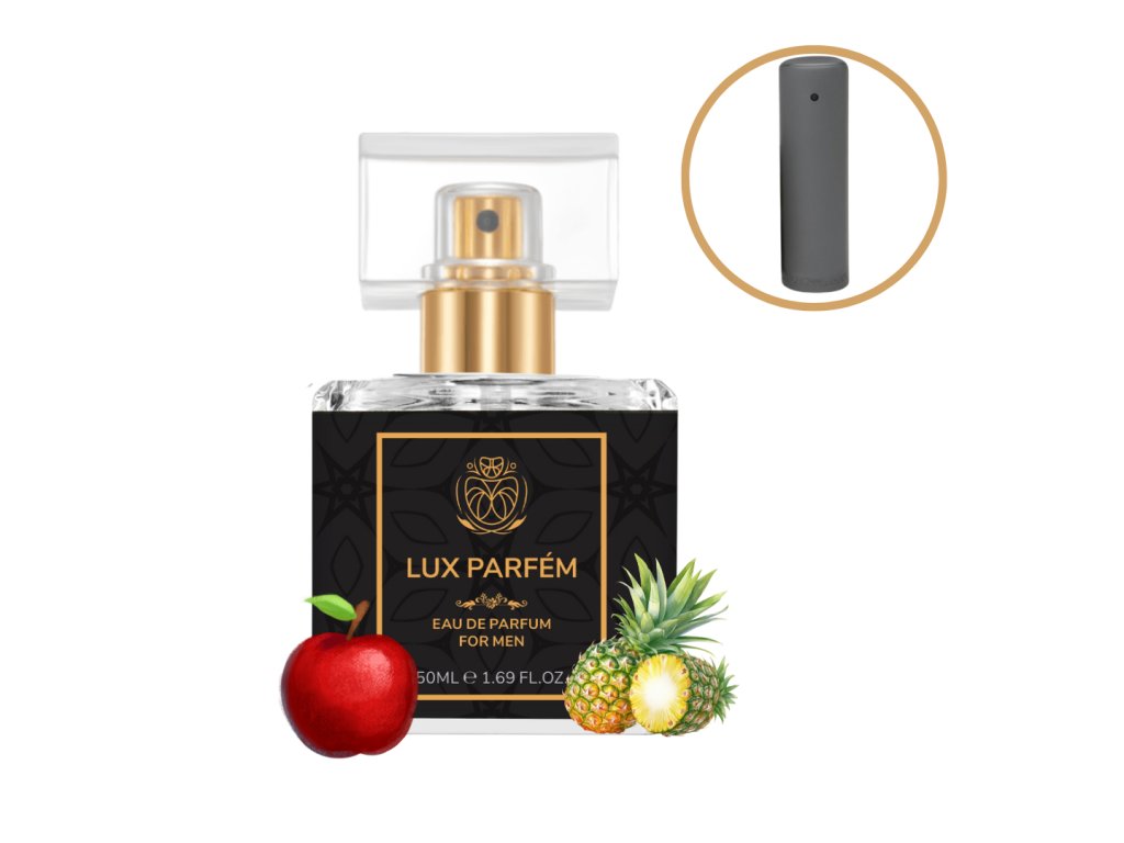Náš parfém je inšpirovaný citrusovo - aromatickou vôňou Emporio Armani Lui. Vrchné tóny sú ananás, mandarínka, jablko, šalvia, yuzu, bergamot, kardamón a citrón, stredné tóny sú cyklámen, muškátový oriešok, koreň kosatca, jazmín a ruža a základ je santalové drevo, fazuľa tonka, ambra, pižmo, dubový mach a céder.
