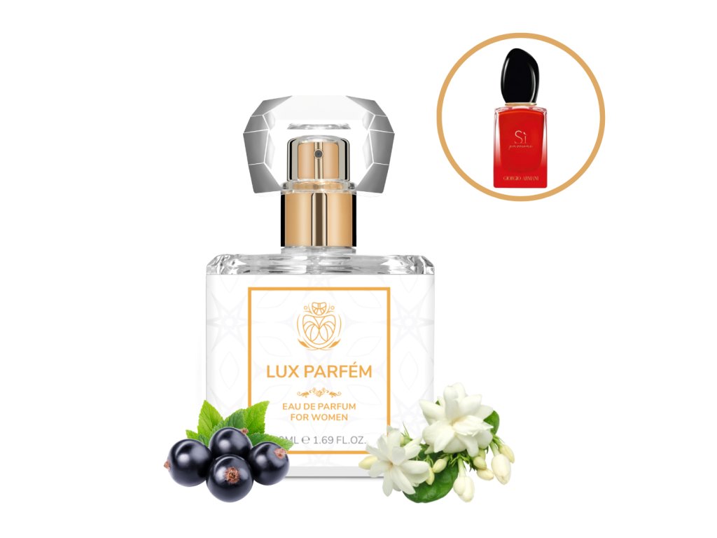 Náš parfém je inšpirovaný orientálno - kvetinovou vôňou Si Passione Intense. Vrchné tóny tvorí sirup z čiernych ríbezlí, stredné tóny jazmín a základ tvorí biele pižmo, céder, pačuli a vanilka.