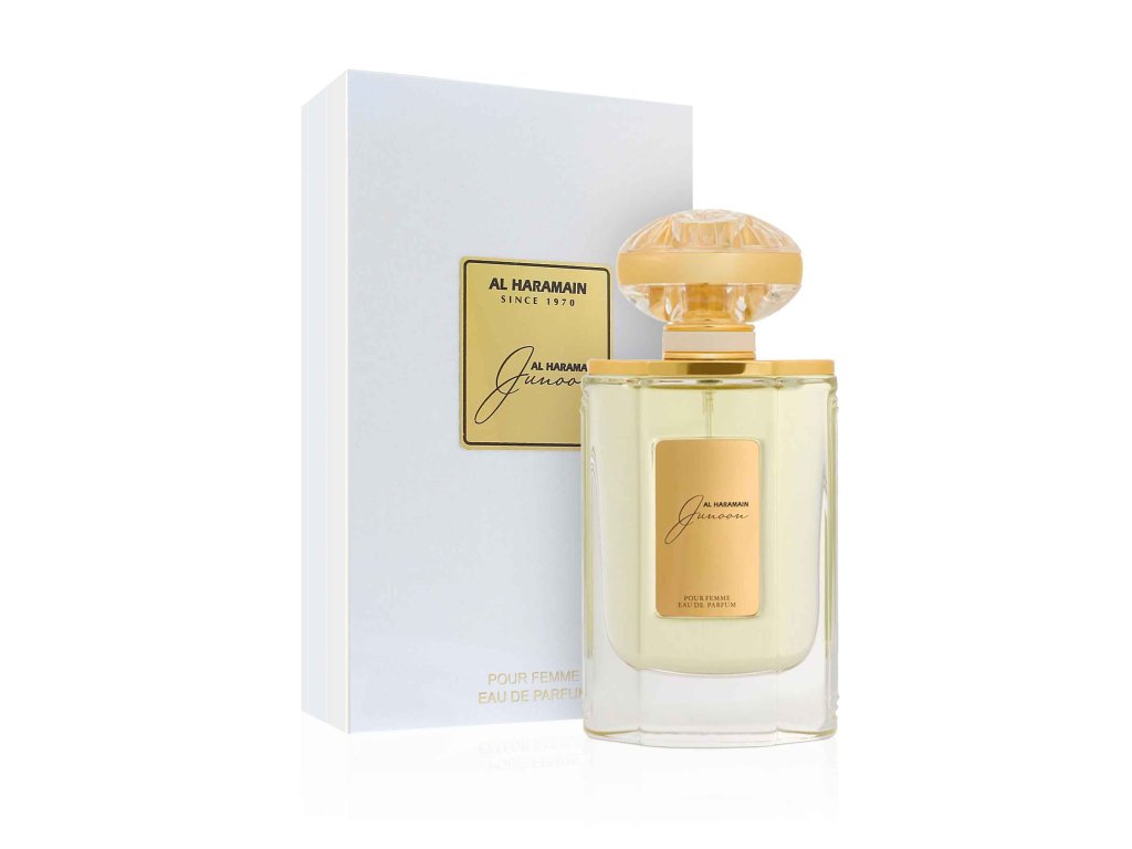 Hrejivá, kvetinová a púdrová vôňa, ktorá vás zahalí do svojej sladkej krajiny zázrakov. Parfumovaná voda Al Haramain Junoon je vyvážený, všestranný parfum, ktorý vás vtiahne do vrstiev kvetinových tónov s nádychom sladkosti. Sofistikovaný a zmyselný zároveň. Vôňa navrhnutá tak, aby pozdvihla každú príležitosť aj ženu, ktorá ju nosí. Vôňa Al Haramain Junoon bola uvedená na trh v roku 2016.Dodatočné parametre