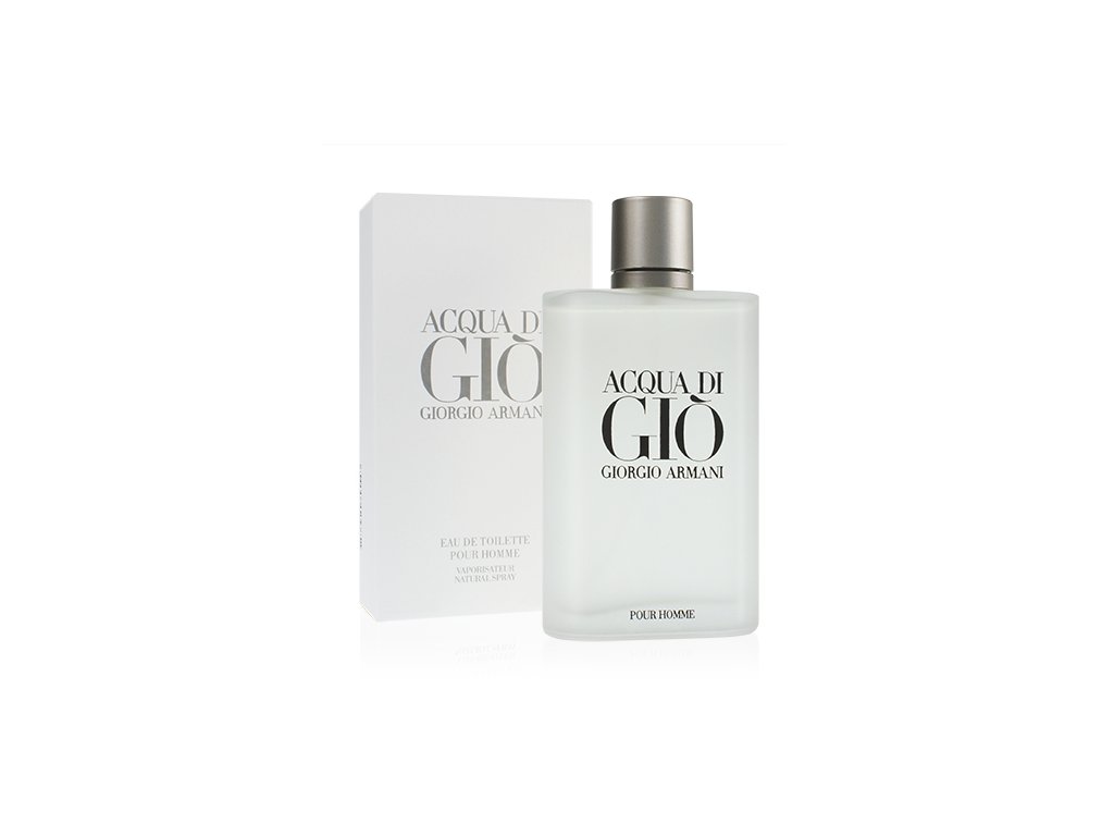 Acqua di Gio predstavuje perfektnú harmóniu sladkých a slaných tónov morskej vody a slnečných lúčov dopadajúcich na pokožku. Iskrivé esencie bergamotu, citrónu, pomaranču a limetky zaisťujú extrémny príval sviežosti. Kvetinové srdce vône dopĺňajú morské tóny a aromatický muškátový oriešok. Záver sa nesie v znamení bieleho pižma, cédru a indonézskeho pačuli.