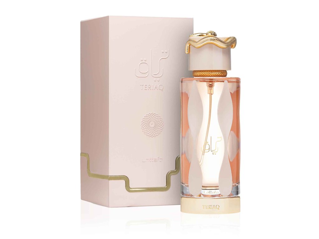 Parfumovaná voda Lattafa Teriaq je nádherná unisex vôňa, ktorá prekračuje hranice tradičných vôní a je ideálnou voľbou pre mužov aj ženy. Teriaq, ktorý navrhol uznávaný parfumér Quentin Bisch, ponúka luxusný a sofistikovaný profil vône, ktorý zachytáva podstatu nadčasovej elegancie s moderným nádychom. Vôňa sa otvára lákavou zmesou karamelu, horkých mandlí a marhúľ s nádychom ružového korenia. Toto otvorenie oplýva sladkými a korenistými vôňami, ktoré hneď od začiatku zapájajú zmysly. Vôňa potom prechádza do nádherného srdca z medu, bielych kvetov, rebarbory a ruže, ktoré jej dodávajú jemnú kvetinovú sladkosť a elegantnú, jemnú rovnováhu. Dobre zladený záver s hrejivými, dlhotrvajúcimi tónmi vanilky, pižma, labdana, kože a vetiveru zanecháva stopu, ktorá pretrváva a podmaní si vás po celý deň. Lattafa Teriaq bola uvedená na trh v roku 2024.Dodatočné parametre