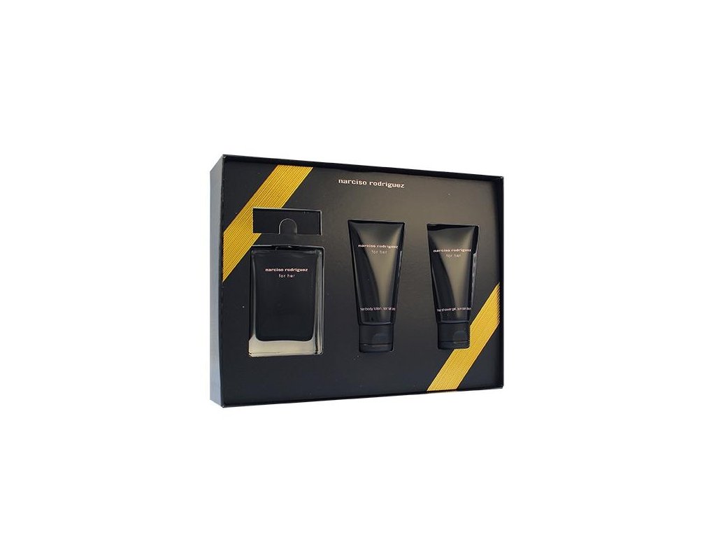 Súprava obsahuje: 50 ml toaletnej vody, 50 ml telového mlieka, 50 ml sprchového gélu. Narciso Rodriguez For Her Eau de Toilette pre ženy je opojná a zvodná vôňa pre modernú ženu. Nechajte sa zahaliť parfémom Narciso Rodriguez For Her, ktorý pripomína zmyselnú vôňu holého tela. Jemná a sofistikovaná toaletná voda Narciso Rodriguez For Her vyžaruje čistotu a nenápadnú eleganciu. Kvetinové tóny pomarančového kvetu a osmanthu dopĺňajú ženské krivky bieleho pižma. Kvapka bergamotu dodáva sviežosť, zatiaľ čo ambra a vanilka vytvárajú zmyselnú teplo. Vetiver a pačuli naznačujú sebavedomie a smelosť, ktoré sa diskrétne skrývajú pod jemným ženským vzhľadom.Dodatočné parametre