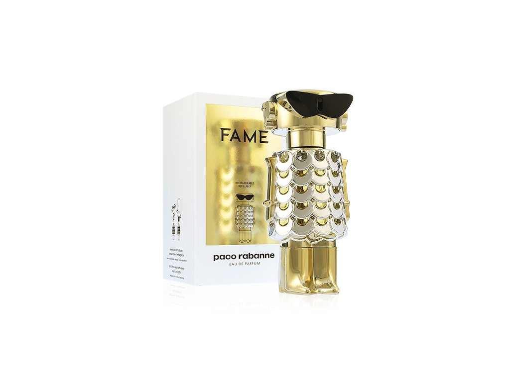 Objavte Fame - očarujúcu novú vôňu oslavujúcu éru hravej a oslnivej ženskosti. Parfumovaná voda Paco Rabanne Fame je stelesnením avantgardného luxusu, ktorý prekypuje vzácnymi ingredienciami. Skutočne neodolateľná vôňa, ktorá vyžaruje radosť a odvážnu zmyselnosť. Zahaľte sa do ikonickej a fascinujúcej vône, ktorá nenechá nikoho ľahostajným. Flakón parfumu, vytvorený ako vzácny šperk, je odetý do symbolických kódov návrhára. V jeho srdci sa spájajú tóny jazmínu výnimočnej čistoty so sladkou a gurmánskou vôňou šťavnatého manga, korunovanou krémovými akordmi kadidla. Vôňa Paco Rabanne Fame bola uvedená na trh v roku 2022.